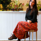 Annachiara è un’elegante gonna a pieghe, confezionata in pregiato tessuto stampato proveniente dalla celebre manifattura Liberty of London.
