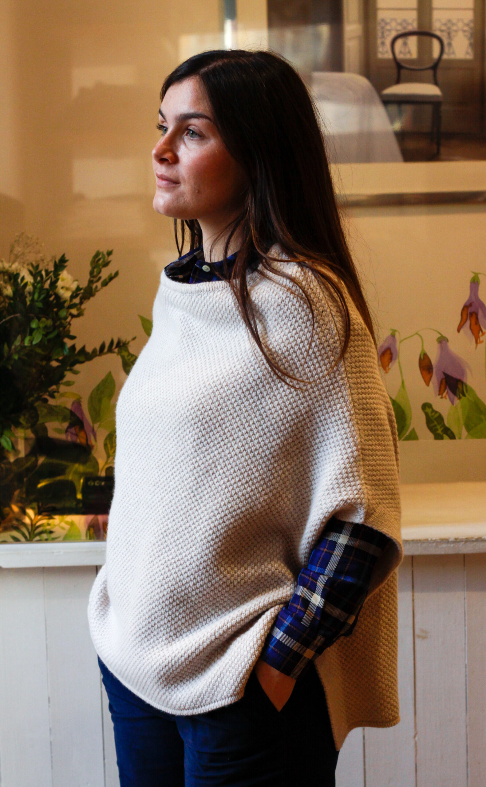 Livia è la mantella perfetta per accompagnarvi nelle fresche sere dell’autunno e come strato aggiuntivo nelle fredde giornate invernali. Realizzata in un prezioso mix di lana e cashmere lavorato a punto riso, è il capo ideale da avere sempre con sé..