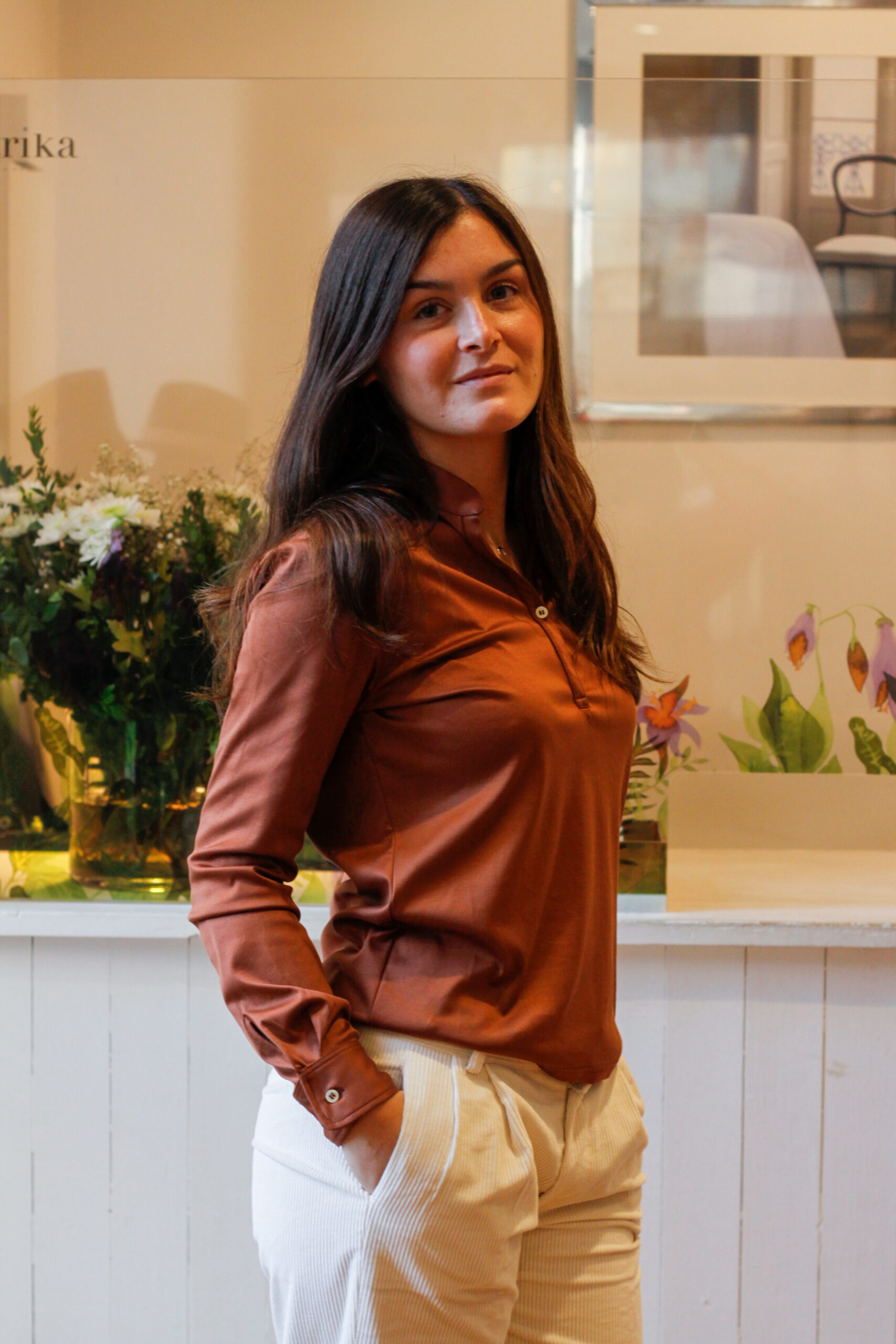 Orsetta è la polo da donna a manica lunga che unisce sportività ed eleganza, con il suo collo alla coreana, i due bottoni e i polsini con bottoni, è perfetta per un look curato e disinvolto in ogni occasione.