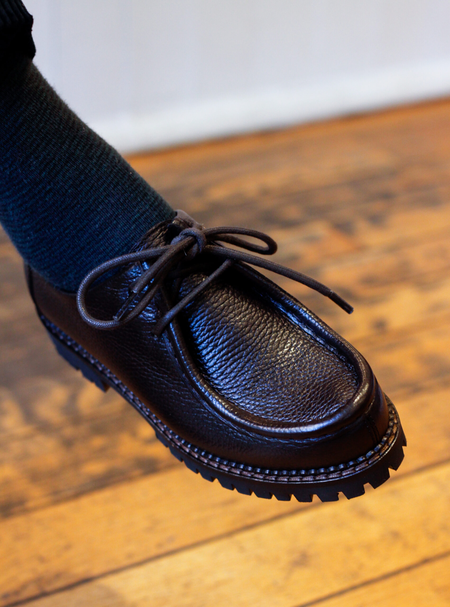 Nicolle è una stringata da donna invernale realizzata con cura artigianale, una scarpa caratterizzata da cucitura a vista sul profilo della tomaia. Forma piena, suola carrarmato e mix di materiali conferiscono un carattere forte, per chi ama distinguersi senza rinunciare al comfort. Una reinterpretazione contemporanea del classico, ideale per chi apprezza dettagli ricercati ed eleganza. Questa versione, in vitello a grana grossa, le dona unicità e versatilità.