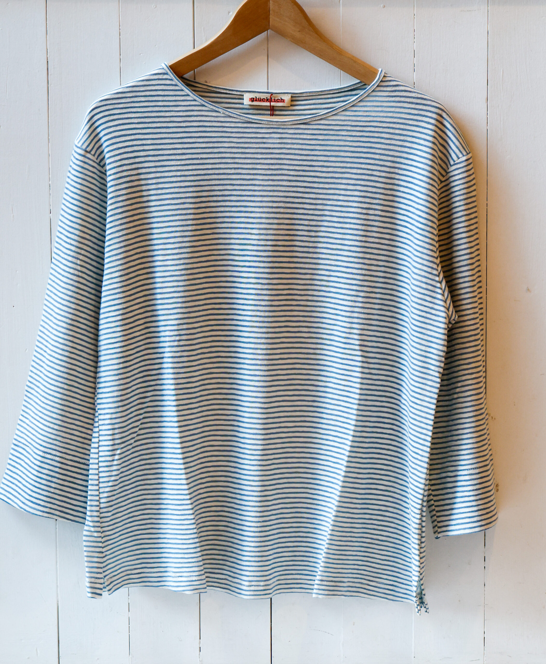 Claudia è la nuova t-shirt a manica 3/4 in morbido cotone rigato, leggera e naturalmente fresca. La linea semplice incontra il comfort dei materiali naturali, per un capo che sa di estate e giornate spensierate. Le righe delicate e la vestibilità rilassata la rendono perfetta da indossare sia in città che al mare.